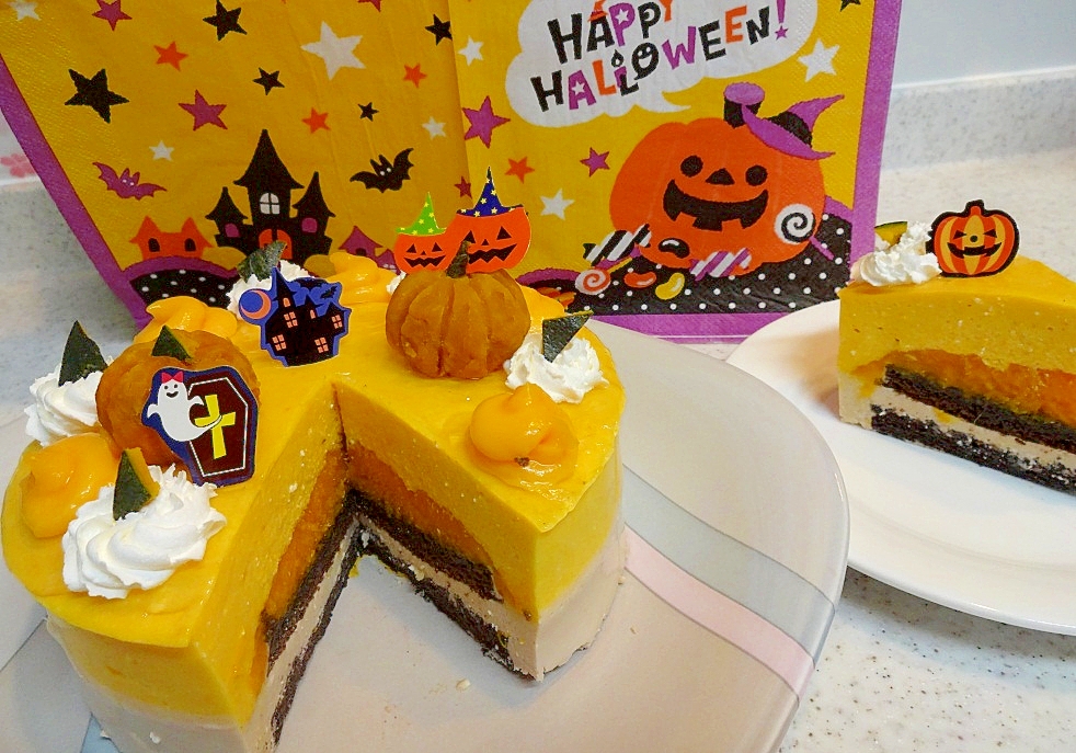 ハロウィンケーキ かぼちゃムースとココアスポンジ マイティの Awesome Cooking