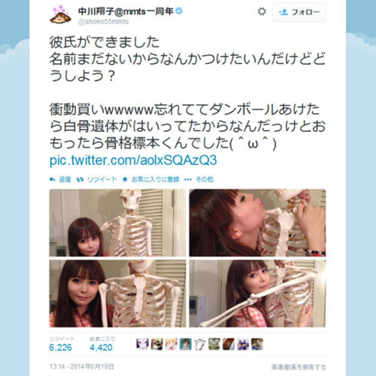 彼氏ができました しょこたん すごく背が高い細身の彼とのツーショット写真をアップ 14年5月19日 エキサイトニュース
